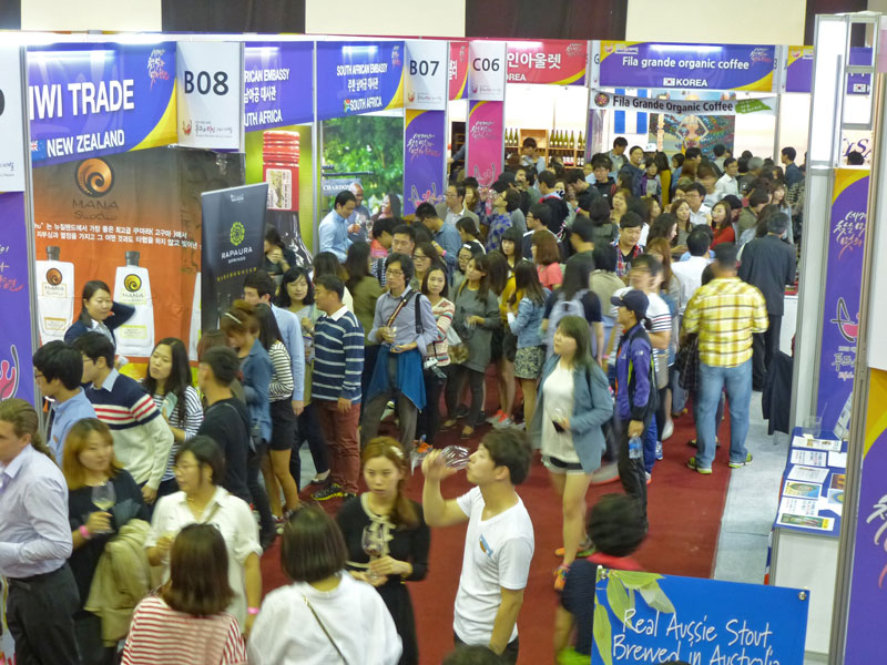 Das Besucherinteresse vor allem junger Menschen war bei dem Festival gewaltig. Neben Bier sind die traditionellen alkoholischen Getränke in Korea ein Reisdestillat mit rund 20% Vol. Alkohol, genannt Soju (sodschu), und eine Art Federweißer aus Reis, genannt Makgeolli (makkollí), mit 6 bis 8% Vol., der teilweise aromatisiert angeboten wird. Wein hingegen ist für viele Konsumenten noch ein weitgehend unbekanntes Produkt. Aber die Disziplin und die Ausdauer, mit der die aufgeschlossenen Besucher um Proben der präsentierten Weine Schlange standen, zeigt, dass die Fruchtigkeit und die Zugänglichkeit, vor allem von restsüßen Weinen, durchaus die geschmacklichen Vorlieben der jungen Koreaner treffen. Insofern schlummert in diesem Land ein riesiges Potenzial.